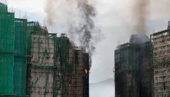Un devastador incendio en un complejo habitacional del distrito de Tai Po, en...