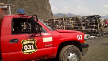 Choque entre un autobús de pasajeros y un tráiler en una carretera del...