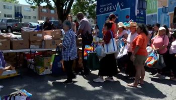 Decenas de familias se agolpan dos veces al mes frente a un camión que...