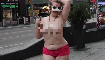 Mujer semi desnuda se pasea próximo consulado RD-NY