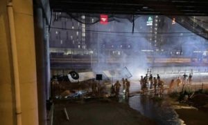 El autobús cayó varios metros desde una calle elevada y se estrelló contra una vía férrea en Mestre, donde estalló en llamas, reportó la prensa local. Los equipos de emergencias acudieron al lugar.