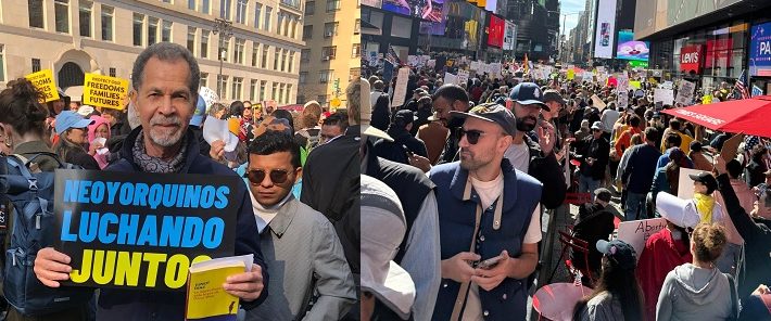 El dominicano Luis Mayobanex Rodríguez, activista social, comunitario y miembro de la Coalición por Defensa de los Inmigrantes en esta ciudad, al participar de la misma junto a varios connacionales, sostuvo: «Se confirma que NY es una ciudad comprometida con los mejores de la democracia y opuestos sus habitantes a todo intento de imponer un régimen rayando en la dictadura».