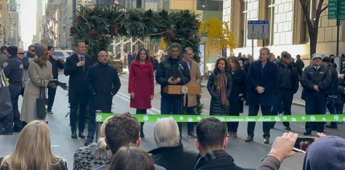 NUEVA YORK.- A partir de este domingo, el comisionado del Departamento de Transporte de NYC (DOT), el dominicano Ydanis Rodríguez, junto a otros funcionarios gubernamentales neoyorkinos, dejó inaugurado el cierre para transitar vehiculos de 11 cuadras en la Quinta avenida en Manhattan para promover las compras durante las fiestas navideñas y la seguridad peatonal.