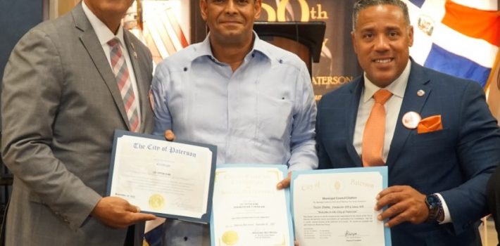 PATERSON-Nueva Jersey.- El Concejo Municipal de esta ciudad reconoció al director de relaciones comunitarias de la Fundación del Aeropuerto Internacional de Bávaro (AIB) de República Dominicana, Víctor Dumé, durante su reciente visita a Estados Unidos.