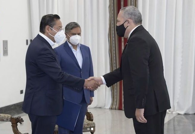 El presidente del Estado Plurinacional de Bolivia, Luis Arce Catacora, recibió en la Casa Grande del Pueblo, sede del gobierno boliviano, las cartas credenciales del primer dominicano en encabezar la representación diplomática en esa nación, Claudio Marte.