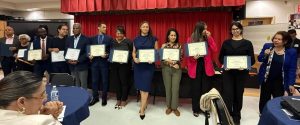 También el director de la Fundación Juan Pablo, Domingo Cruz, y el director ejecutivo de Dominicanos USA, Eddie Cuesta. Cada uno de los participantes recibieron un reconocimiento de parte de la directora del programa, la decana Reyes.