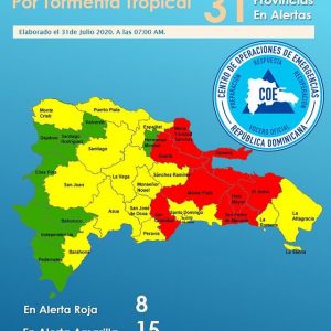 SANTO DOMINGO,-El Centro de Operaciones de Emergencias (COE) , disminuyoo la mañana de este viernes a ocho provincias a alerta roja ante los efectos por el paso tormenta tropical Isaías por territorio de República Dominicana.