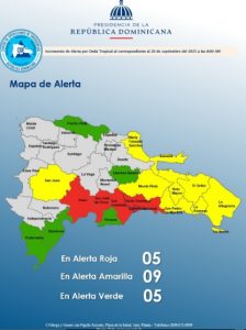 Santo Domingo, – El Centro de Operaciones de Emergencias (COE) elevó a cinco el número de provincias en alerta roja debido a las intensas lluvias provocadas por una onda tropical activa combinada con una vaguada en niveles altos de la atmósfera.