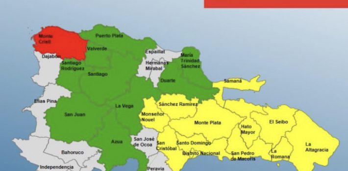 En tanto, en alerta verde se mantiene Santiago, La Vega, María Trinidad Sánchez, Azua, Duarte, San Juan, Santiago Rodríguez, Valverde, Puerto Plata.