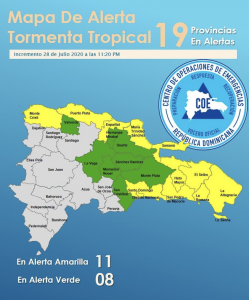 Mientras que están en alerta amarilla La Altagracia, El Gran Santo Domingo, La Vega,
