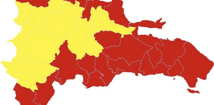 Las provincias en alerta roja son: La Altagracia, Samaná, San Pedro de Macorís, Hato Mayor, El Seíbo, Puerto Plata, Montecristi, María Trinidad Sánchez, San Cristóbal, La Romana, Distrito Nacional, Espaillat, Azua, Peravia, Monte Plata, Barahona, San José de Ocoa y Gran Santo Domingo, Perdenales y Sánchez Ramírez
