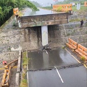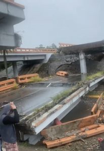 La Vega,-Un carril del puente en la autopista Duarte, en el tramo del distrito municipal de Pontón, ha colapsado en medio de las lluvias provocadas por los efectos del huracán Fiona.