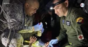 Fue en medio de la oscuridad que militares colombianos subieron en cuerdas a los niños a un helicóptero para después trasladarlos en un avión con equipamiento médico al hospital militar en Bogotá.