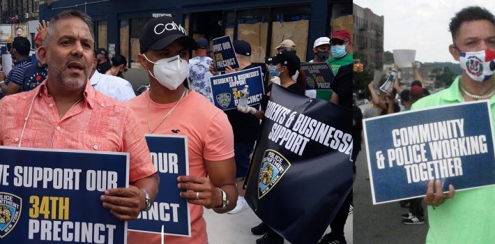 Comerciantes y residentes dominicanos apoyan al NYPD en manifestación frente a cuartel en el Alto Manhattan