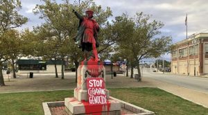 La vandalización de la efigie del navegante genovés, forma parte de una agresiva campaña nacional que busca que se anule la festividad en honor a Colón en todo el país.