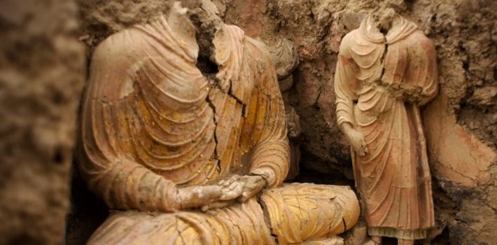 Luego saqueadores hicieron los mismo con muchas antigüedades del sitio. Aún así, los arqueólogos que llegaron en 2004 lograron una excavación parcial y descubrieron restos de un vasto complejo, que incluye cuatro monasterios, antiguos talleres de cobre y una ciudadela. Quedó claro que el área había sido un importante asentamiento budista, una encrucijada para los comerciantes que venían del oeste y los peregrinos de lugares lejanos, incluso de China.