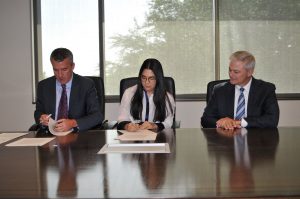 La presidenta ejecutiva del CONANI, Kenia Lora Abreu, y el director ejecutivo de Both Ends Believing, Mark Scwartz, firmaron el acuerdo que otorga la donación de a República Dominicana que permite el uso del Children First Software, en un acto llevado a cabo en la ciudad de Dallas, Texas, Estados Unidos.