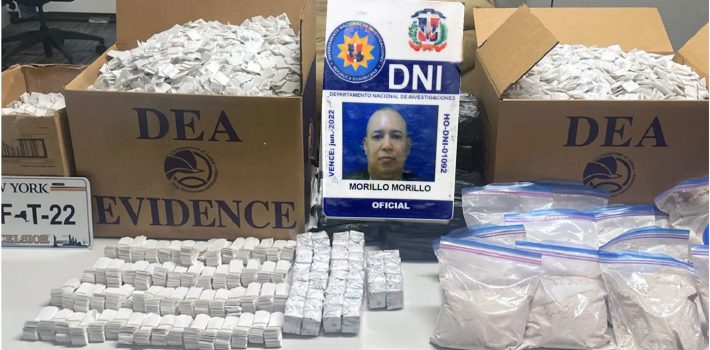NUEVA YORK,- Agentes de la DEA, la fiscalía especial anti narcóticos  y policías de la ciudad, confiscaron el domingo 11 de julio en un allanamiento a dos apartamentos en El Bronx, 40 libras de heroína y fentanilo, y 225 mil sobres, valorados en $5 millones de dólares en  el mercado callejero y un carnet del Departamento Nacional de Investigaciones (DNI)   a tres dominicanos, Héctor Morillo, Jaime Artiles y Freddy Hernández Reyes, quienes fueron acusados el viernes y vendían las drogas con las etiquetas “COVID-19” y “Drop Dead” (Gota de Muerte).
