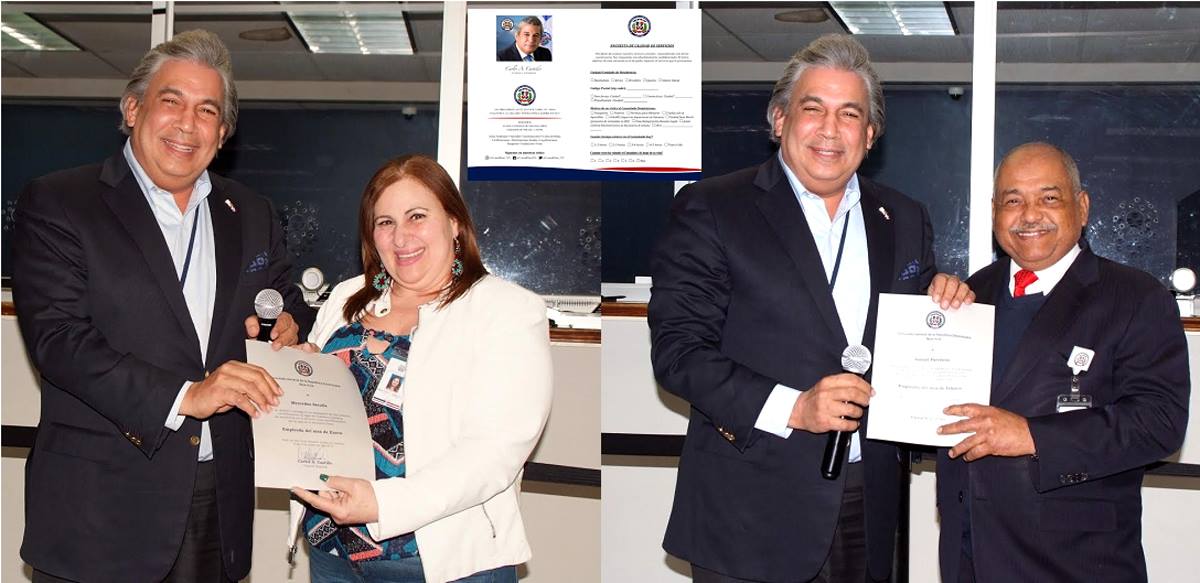 Castillo, les entregó el Premio al Mérito Empleado del Mes a Serulle y Ferreiras, anunciando también la implementación de un cuestionario que será distribuido entre los contribuyentes, lo que le permitirá a ese organismo una mayor calidad de los servicios que ofrece y satisfacción plena de quienes buscan tramitar sus documentos consulares.