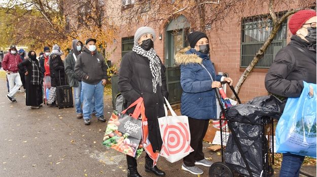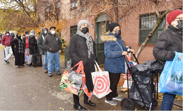 Dicha entrega, desafiando las bajas temperaturas de este invierno, se llevó a cabo en Southern Boulevard con la calle 149, donde los beneficiarios recibieron arroz, aceite, habichuelas, tomate cebollas, papas, queso, espaguetis, sopas, galletas, huevos y botellas de agua, entre otros productos.