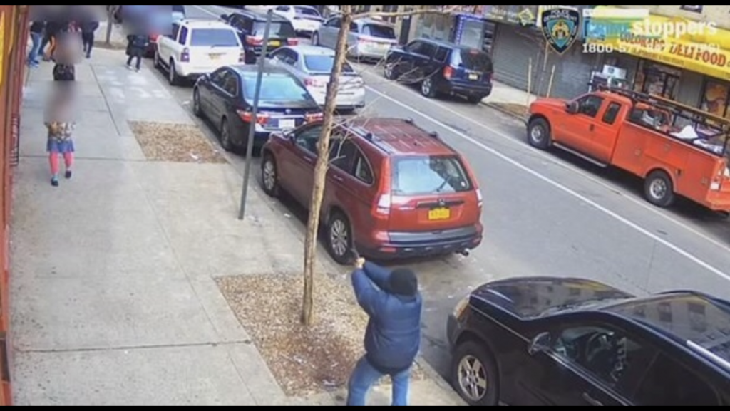 Un video de vigilancia divulgado por la policía muestra cuando un joven hispano la emprende a balazos contra el grupo, quedando en el medio del tiroteo una niña que regresaba de la escuela y apenas pudo guarecerse mientras el resto de las personas comienza a correr.