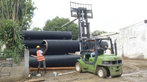 Burgos indicó que se trata de 2.1 kilómetros de tubería de 18 y 30 pulgadas de Polietileno de Alta Densidad también conocido como HDP por sus siglas en inglés High Density Polyethylene.