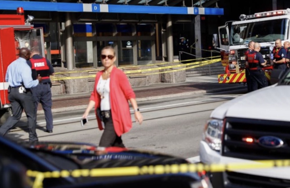 El Departamento de Policía había informado que estaba investigando un tiroteo «entre un pistolero y un oficial de policía» ocurrido en el lobby y en el área de entrega del Fifth Third Bank.
