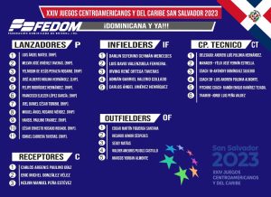 Santo Domingo. La Federación Dominicana de Béisbol (FEDOM) dejó establecido este viernes el roster definitivo del equipo quisqueyano que representará al país en los Juegos Centroamericanos y del Caribe, evento programado para efectuarse en El Salvador del 23 de junio al 8 de julio, teniendo a la República Dominicana como subsede.