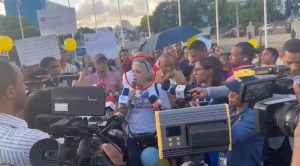 Con megáfono en mano proclamó: “vengo caminando de otras protestas, lamentablemente este país está manga por hombros”. “Vine aquí a solidarizarme y cada dominicano debe movilizarse y venir a este Congreso, porque ese grupo de sanguijuelas, se está chupando el dinero y luego nos los quieren chupar a nosotros”.