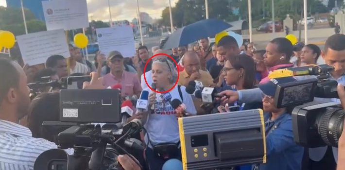 La aguerrida líder comunitaria en la Gran Manzana, quien viajó hace varios días a la RD para asistir al juicio contra una Inmobiliaria que la estafó con millones de pesos dominicanos, al igual que a decenas de sus connacionales, participó este jueves de la protesta que hicieron decenas de dominicanos frente al Congreso Nacional contra el proyecto de reforma fiscal del presidente Luis Abinader, por considerar que lesionará a la clase media y más pobre.