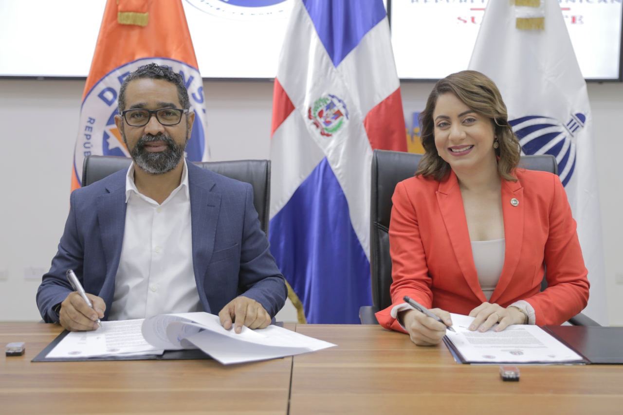 El convenio interinstitucional fue firmado por el presidente de la Comisión Nacional de Emergencias y director ejecutivo de la Defensa Civil, Juan Salas y la directora general del programa Supérate, Gloria Reyes.