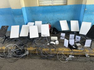 Entre los equipos ocupados con los que operaba la red de internet que funcionaba de manera clandestina en el Centro de Privación de Libertad de La Victoria, se encontraban 12 parábolas de internet satelital marca Starlin y 6 repetidores de señal, indica un comunicado de prensa de la DGSPC.