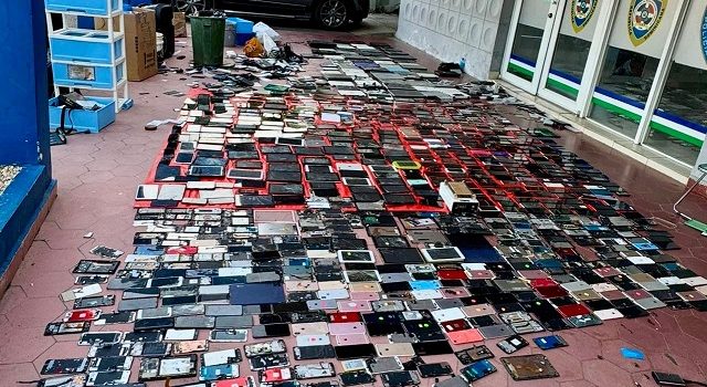 Durante el operativo, las autoridades incautaron una gran cantidad de dispositivos tecnológicos, entre ellos 189 teléfonos móviles, 84 tabletas, 61 computadoras portátiles, 181 pantallas para celulares, 150 tarjetas electrónicas, 202 carcasas, 35 protectores, 30 chips de teléfonos y 110 chips nuevos adicionales. Además, fueron ocupadas una bocina portátil, una máquina para desmontaje de pantallas, una mochila con herramientas para desarmar equipos y dos gaveteros plásticos.