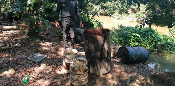 “En vista de lo distante que estaba de la vía de comunicación terrestre más próxima al punto de fabricación del alcohol adulterado, los militares del CECCOM procedieron a verter el líquido y perforar los tanques”, informaron las autoridades de CECCOM.