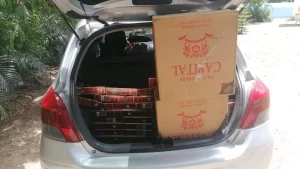 Dajabón,– Un cabo del Ejército de República Dominicana, identificado como Shaquille Oscar Genao Portarlatín, fue arrestado tras ser sorprendido transportando un cargamento ilegal de 59,400 cigarrillos de la marca Capital en el puesto de chequeo El Laurel, en Dajabón.