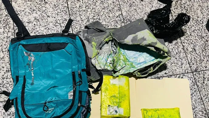 “Los paquetes y la lámina de la sustancia, con un peso preliminar de 2.56 kilogramos fueron ocupados camuflados en el doble fondo de la mochila”, señala el comunicado de prensa.