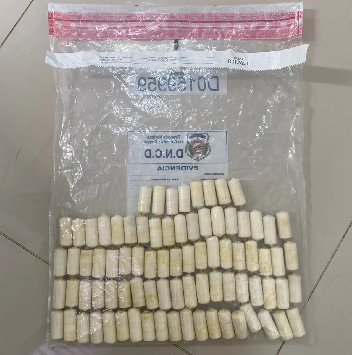 Tras varios días, en el centro hospitalario, el hombre logró expulsar las 83 bolsitas de cocaína, en forma cilíndricas, que llevaba en sus vías digestivas.