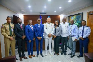 El director general de Migración (DGM) Vicealmirante Luis Rafael Lee Ballester, ARD., junto a los directores de inteligencia y control migratorio de la institución, sostuvo una reunión con funcionarios consulares de la Embajada de Haití en el país, encabezada por Ralph Giraldo Raphael, Ministro Consejero, en la cual conversaron sobre los protocolos que guían las operaciones de interdicción y el procesamiento de migrantes en los centros de detención gestionados por la DGM, a quienes garantizó que estos se están ejecutando de conformidad con la Ley General de Migración 285-04 y su reglamento de aplicación.