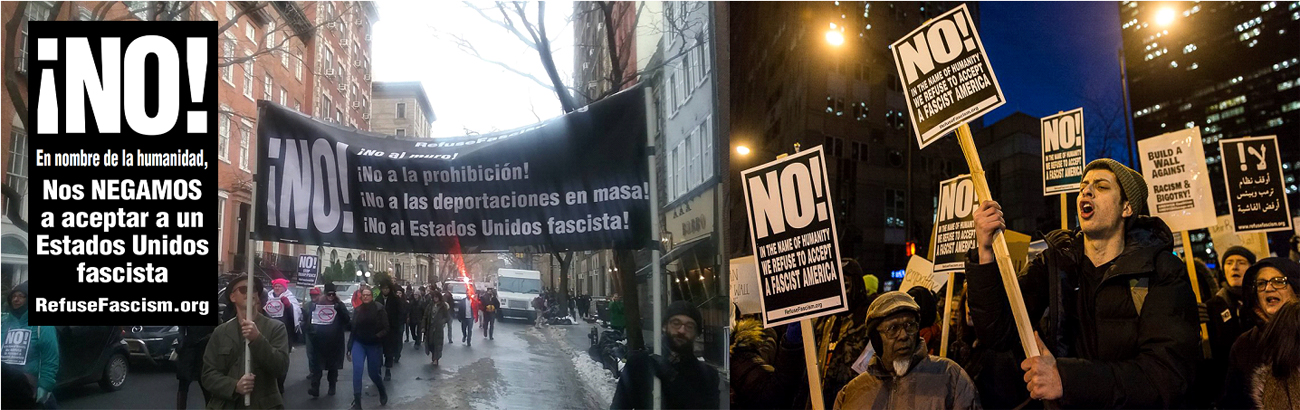 Las manifestaciones, una de ellas, frente al hotel internacional Trump, fueron organizadas por el grupo anti fascista “RefuseFascism.org”, que califica de nazista la presidencia de Trump, y llega más lejos, comparándolo con el nefasto Adolfo Hitler.