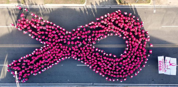 Santiago de los Caballeros.-Por décima ocasión, vestidas de rosado y unidas en cuerpo y alma, cerca de 1,000 trabajadoras del Parque Industrial Víctor Espaillat Mera (PIVEM), formaron el Gran Lazo Humano en prevención del cáncer de mama.