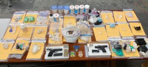 Durante las requisas, los oficiales confiscaron más de 18 kilogramos de fentanilo, $10, 000 dólares en efectivo, dos pistolas semiautomáticas sin licencias, un vehículo Mercedes Benz y un compartimento hidráulico portátil utilizado para ocultar narcóticos.