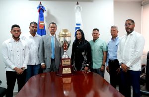 Santo Domingo.- El presidente del Consejo Directivo del Instituto Dominicano de las Telecomunicaciones (INDOTEL), Guido Gómez Mazara, recibió a los directivos del Club Fernando Valerio (Plaza), equipo que se coronó campeón del Baloncesto Superior de Santiago, quienes dedicaron la copa Banreservas al órgano regulador del sector por el apoyo brindado al conjunto durante la competición.