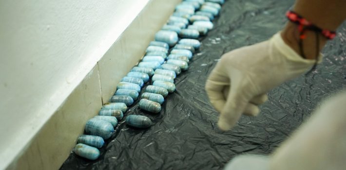 Una vez en la unidad medica, el extranjero de 29 años expulsó 75 cápsulas de cocaina, envueltas en látex de color negro, con un peso total de 790 kilogramos.