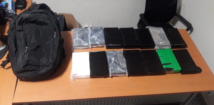 Santo Domingo.- En una operación de vigilancia, seguimiento e interdicción agentes de la Dirección Nacional de Control de Drogas (DNCD), miembros del Cuerpo Especializado de Seguridad Aeroportuaria (CESAC), apoyados por inspectores de Aduanas (DGA) y coordinados por el Ministerio Público, incautaron 14 paquetes presumiblemente cocaína, en el aeropuerto Internacional de Las Américas (AILA-JFPG) municipio de Boca Chica, provincia Santo Domingo.