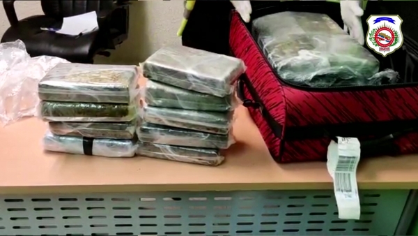 En presencia del Ministerio Público se procedió a requisar las maletas en cuyo interior se ocuparon 50 paquetes de la sustancia, con un peso preliminar de 53 kilogramos.