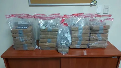 Luego, y tras iniciar una inspección más rigurosa, en presencia de un fiscal adjunto, se ocuparon en los compartimentos (escondidos) del área del motor del contenedor, los 50 paquetes de la sustancia, envueltos en cinta adhesiva.