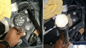 Tras iniciar el proceso de revisión a la maleta, se descubrió que dos tubos del equipaje estaban llenos de una sustancia que se presume es cocaína y cuyo peso preliminar fue de un kilo y 70 gramos.