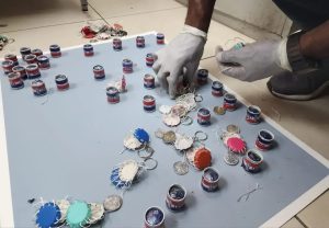 Santo Domingo.- Agentes de la Dirección Nacional de Control de Drogas (DNCD) y miembros del Ministerio Público ocuparon 36 llaveros rellenos de cocaína, que serían enviados a Estados Unidos, bajo esta modalidad de narcotráfico, a la que las autoridades le han estado dando seguimiento desde hace varios meses.
