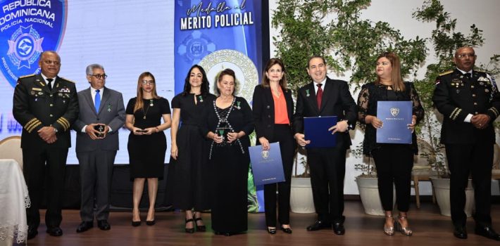 La Medalla al Mérito Policial 2025 reconoce a hombres, mujeres e instituciones que, desde distintos ámbitos, trabajan en favor del desarrollo de la nación y la consolidación de un Estado más humano, seguro y solidario, en ese orden, también fueron galardonados los ministros Faride Raful, y de Deportes Kelvin Cruz; el presidente del INDOTEL, Guido Gómez Mazara y el neurocirujano José Joaquín Puello Herrera.