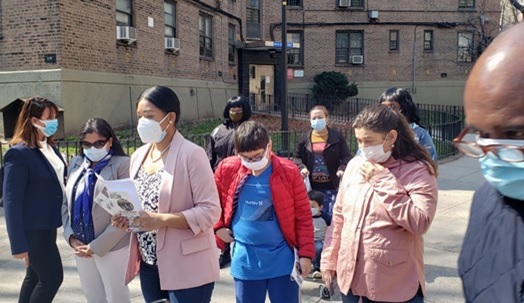 La candidata, con más de dos décadas de experiencia en el servicio público, estuvo acompañada de los líderes políticos y comunitarios Joyce Sánchez, Richard Campbel, la candidata a juez para la corte civil de Queens, Soma Syed y por varios activistas comunitarios residentes en el complejo de vivienda.